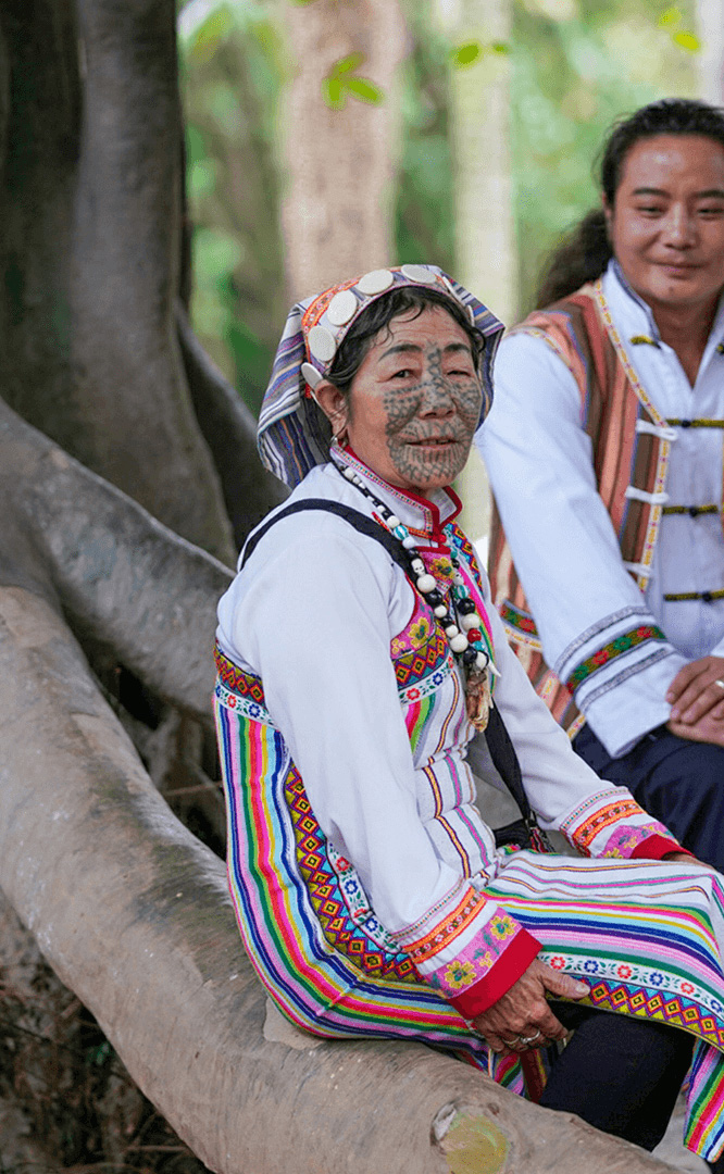 彝族在云南境內(nèi)約471萬(wàn)人,是省內(nèi)人口最多、分布最廣的少數(shù)民族,主要聚居在金沙江、元江流域和哀牢山、無(wú)量山腹地。彝族是一個(gè)能歌善舞的民族,民間打歌、跳樂(lè)之風(fēng)盛行,大三弦、跌腳舞久負(fù)盛名?;鸢压?jié)是彝族最具特色的民族節(jié)日。彝族村占地50余畝,三虎浮雕墻與虎頭內(nèi)祖師形象表現(xiàn)了彝族虎鷹文化。太陽(yáng)歷廣場(chǎng)圖騰柱上有太陽(yáng)、虎、火和八卦圖形象,周?chē)h(huán)繞著10個(gè)朝向不同的月球造型,外圓周有12生肖石雕。依山而建的“...